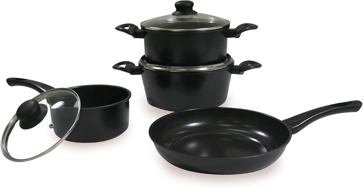 - Cook pasta, make sauces, whip up an omlette! The set includes: 16 cm saucepan and lid, 20cm casserole pan and lid, 22cm casserole pan and lid, 24cm frying pan