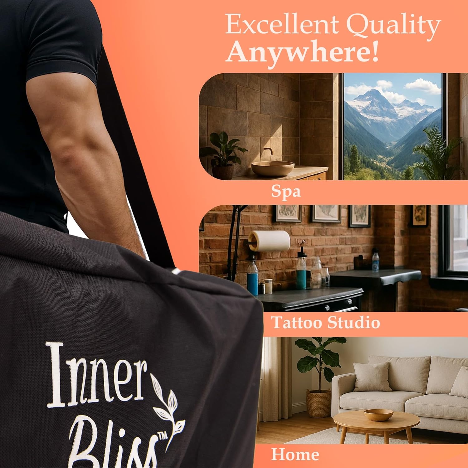 - WHATS INCLUDED: 1 Inner Bliss massage table, adjustable face cradle, armrests, detachable hand shelf, and a zippered carry case. Perfect for massage therapists, beauticians, or tattoo artists seeking a reliable spa bed. Trust Inner Bliss for comfort, style, and function - all in one professional-grade folding massage couch.